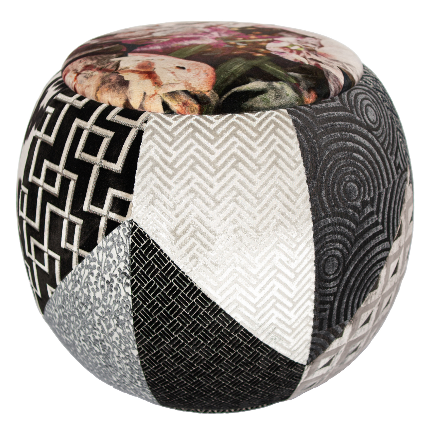 This Queen Chair tells a story of contrast and harmony, where monochrome textures, geometric patterns, and animal-inspired motifs merge into a piece that feels both modern and timeless, while the floral detail of the whimsical designer guild velvet on its crown softens the design like a quiet secret hidden in the middle of the boldness, reminding us that beauty often lives in the balance between strength and fragility.