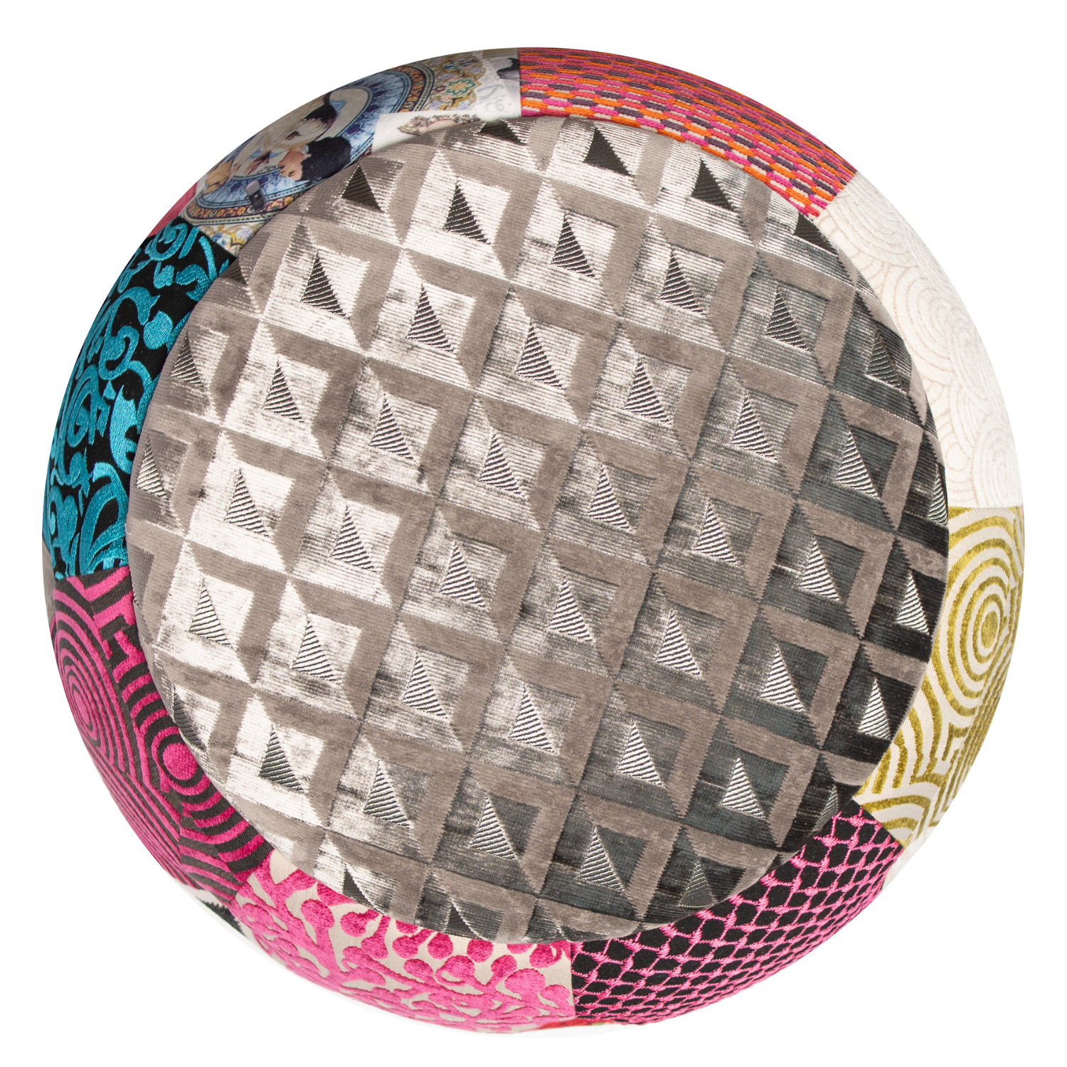 This Queen Chair carries the voice of memory and the rhythm of heritage and modern design. Patterns rise like echoes—woven symbols of strength, blossoms of resilience, and geometric whispers. The top brings together a statement of with a graphite geometric cut velvet with a gorgeous two-tone effect. This chair is not just a seat, but a narrative—an archive of journeys, identities, and the timeless beauty of patchwork artistry.