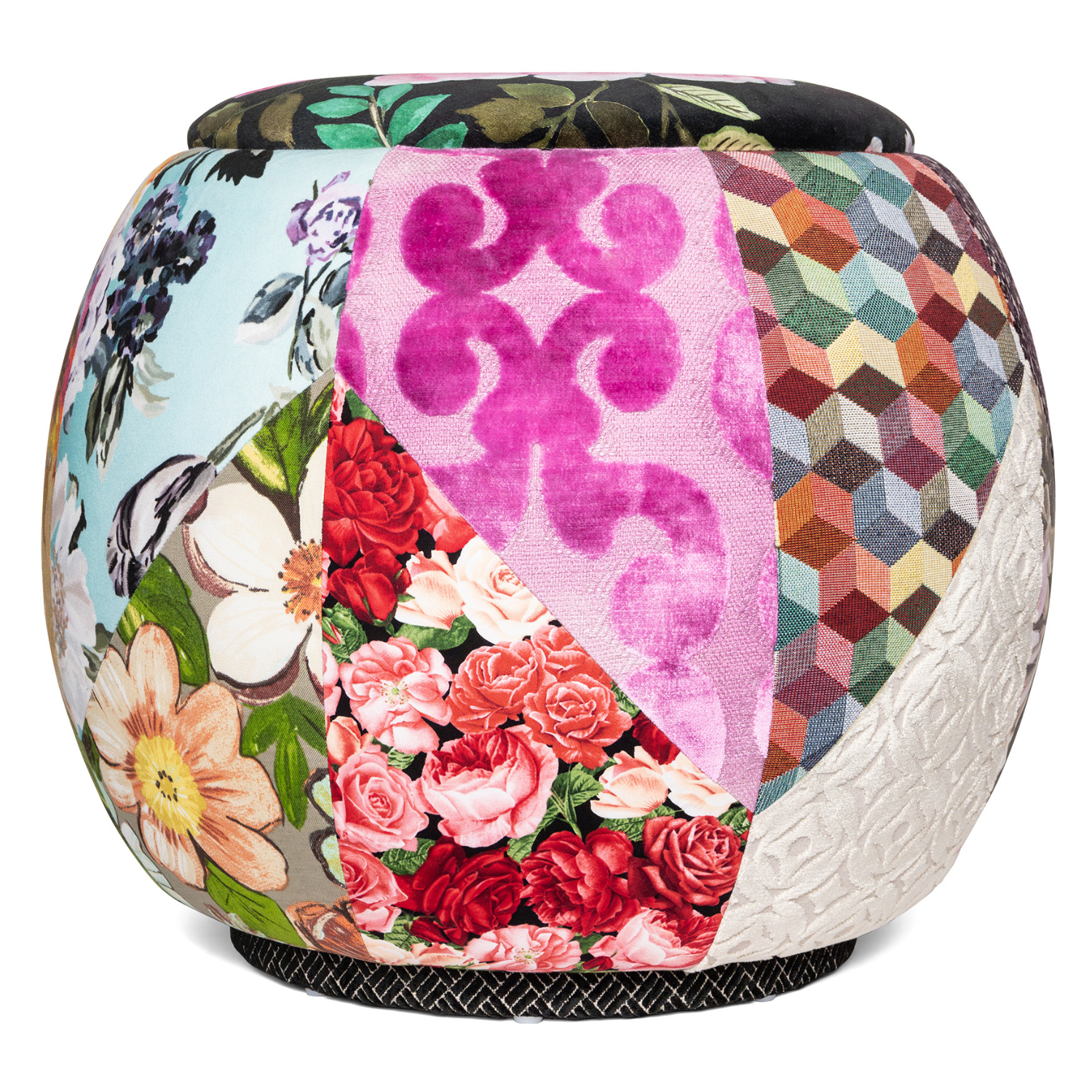 Presenting the Iconic Queen Chair, where artistic expression meets luxury seamlessly. It is crafted from carefully curated large geometric patches sourced from our studio collection, incorporating contrasting elements for visual intrigue. The chair's designer fabric top is meticulously crafted with digitally printed cotton-rich velvet, featuring intricate paintings of trailing flowers and birds, evoking timeless charm. Each patch highlights carefully selected fabric, culminating in a unique creation that effortlessly blends functionality with artistic creativity, showcasing Mishmashi's steadfast commitment to unparalleled craftsmanship and innovative design.