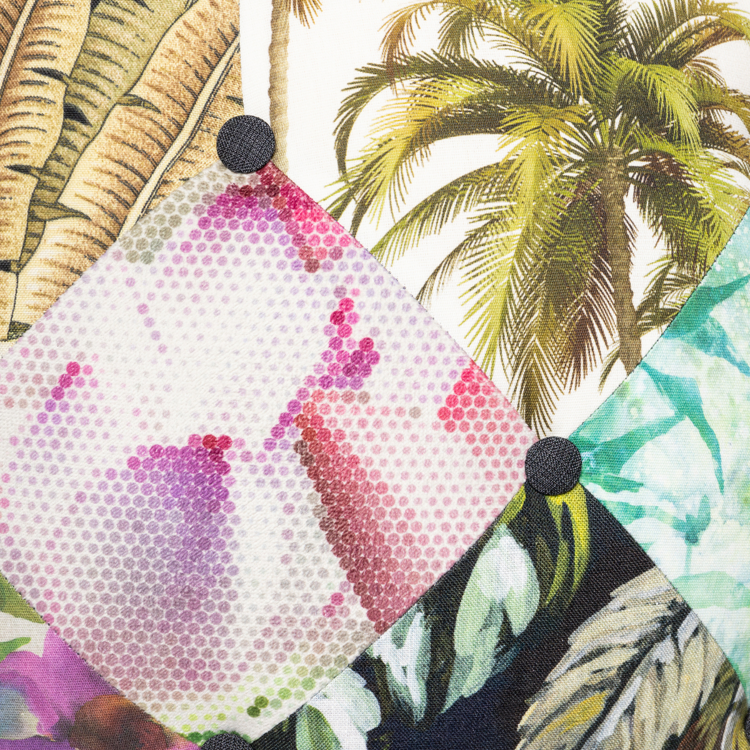 Unveiling the Iconic Queen Chair, a genuine expression of Maison Mishmashi's unwavering dedication to design excellence. Through the meticulous fusion of globally sourced fabrics and the artful harmonization of foliage, floral and greenery vibes, this chair promises an immersive visual experience. The chair's designer fabric top, meticulously crafted with a designer geometric cut velvet, woven with rayon and cotton to achieve a resilient and stunning grey two-tone effect, embodies enduring natures charm and style. This piece offers a captivating juxtaposition of classic elegance and contemporary flair, infused with a touch of eclectic vibes.