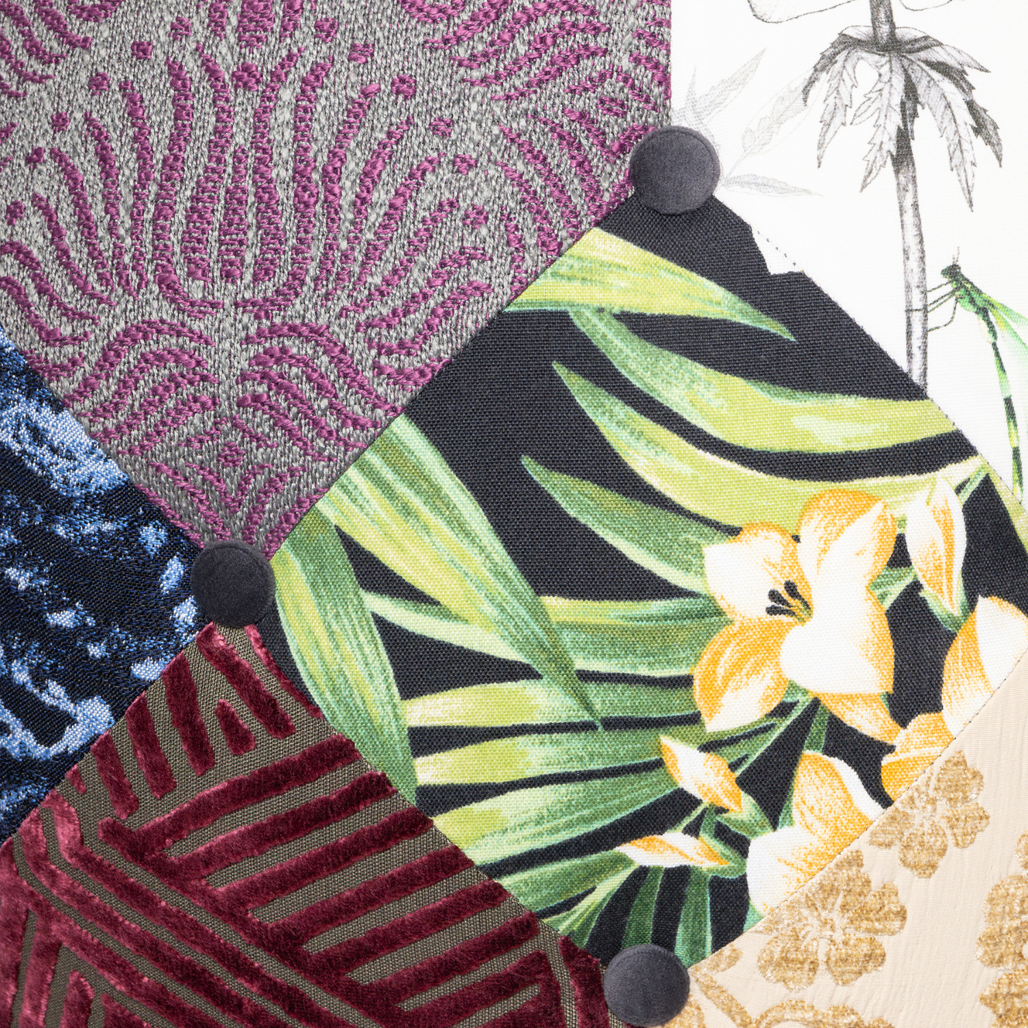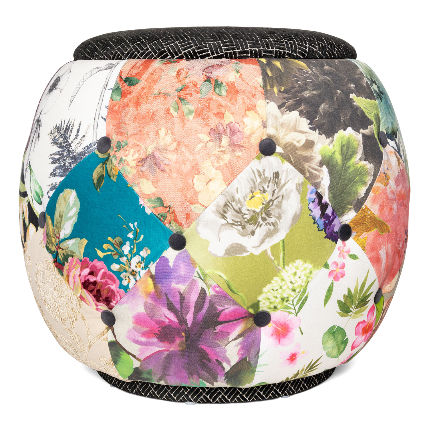 A true embodiment of Maison Mishmashi's unwavering commitment to design excellence, the Iconic Queen Chair is a testament to our dedication. Through the meticulous blending of globally sourced fabrics and the harmonization of complete floral vibes, this chair offers an immersive visual experience. Its designer fabric top, intricately crafted with regal black velvet in a geometric design, boasts a lustrous and luxurious texture, creating a perfect juxtaposition that embodies charm and style. This piece presents a captivating fusion of classic elegance and contemporary flair, infused with stylistic vibes.